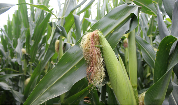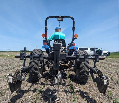 Hình 2. Hình ảnh cho thấy cây ngô ở giai đoạn trỗ cờ - phun râu trong một thí nghiệm đánh giá hiệu quả sử dụng đạm, với các nghiệm thức khác nhau về nguồn phân, liều lượng, thời điểm và phương pháp bón, nhằm xác định ảnh hưởng đến năng suất và chất lượng dinh dưỡng của hạt. Nguồn: Gustavo Roa, nghiên cứu sinh sau đại học, Đại học Bang Kansas.