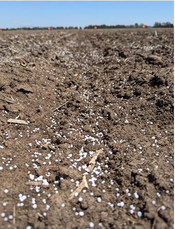 Hình 3. Bón urê trên mặt đất cho cây lúa mì trong thí nghiệm đánh giá hiệu quả sử dụng đạm, nhằm tìm hiểu cách quản lý phân bón không chỉ giúp tăng năng suất, mà còn ảnh hưởng đến chất lượng dinh dưỡng của hạt thông qua tác động lên quá trình hấp thu và phân bố dinh dưỡng trong cây. Nguồn: Sofia Cominelli, nghiên cứu sinh sau đại học, Đại học Bang Kansas.