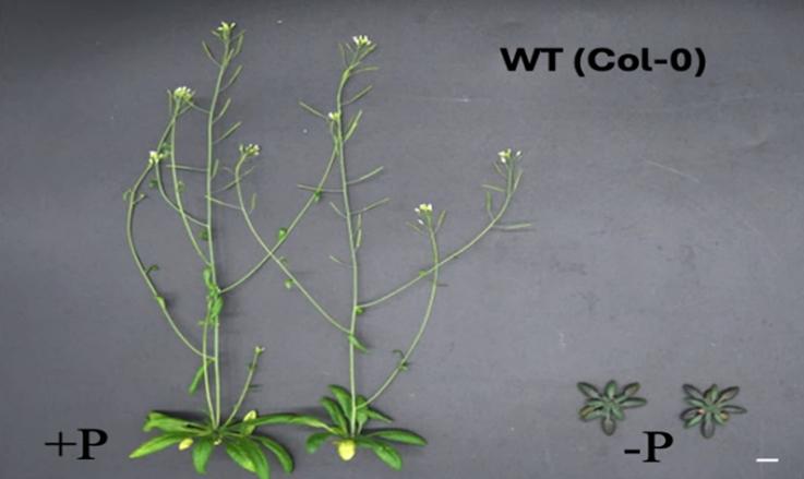 Cây Arabidopsis được trồng có và không có đủ lượng phốt pho. Nguồn: Hatem Rouached.