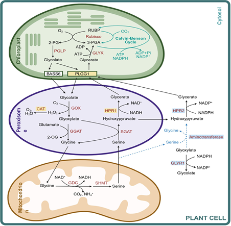 GLYR1 bình thường chuyển đổi glyoxylate thành glycolate, nhưng khi bị vô hiệu hóa, glyoxylate tích tụ và được chuyển hóa thành hydroxypyruvate, rồi thành glycerate bởi một enzyme khác. Hai bước enzyme này cũng xảy ra trong quá trình quang hô hấp chính. Tuy nhiên, shunt diễn ra trong tế bào chất của tế bào, trong khi các bước tương tự trong con đường quang hô hấp chính lại xảy ra trong peroxisome.