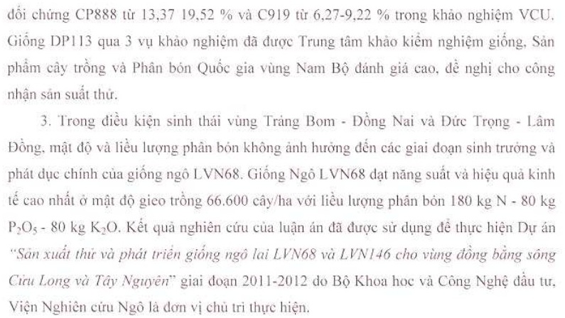 Nghiên cứu chọn tạo giống ngô lai trung ngày năng suất cao cho vùng Đông Nam Bộ và Tây Nguyên.(TS. Vũ Ngọc Quý)