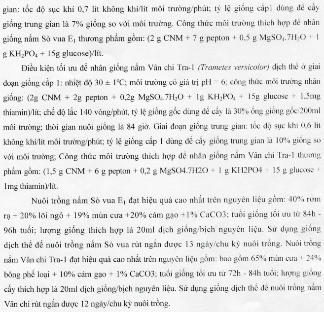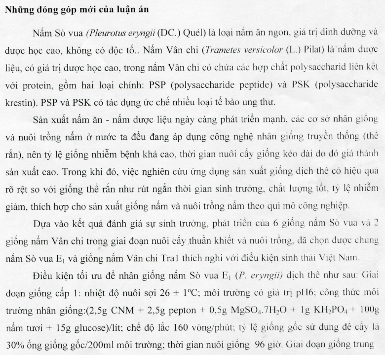 Nghiên cứu đặc tính sinh học và công nghệ nhân giống, nuôi trồng nấm Sò vua (Pleurotus eryngii) và nấm Vân chi (Trametes versicolor) ở Việt Nam.(TS. Nguyễn Thị Bích Thùy)
