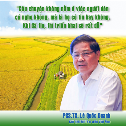Là người trực tiếp chỉ đạo Dự án VnSAT (Dự án Chuyển đổi Nông nghiệp Bền vững tại Việt Nam), PGS.TS. Lê Quốc Doanh, Chủ tịch Hội Làm vườn Việt Nam, nguyên Thứ trưởng Bộ Nông nghiệp và PTNT (nay là Bộ Nông nghiệp và Môi trường), cho rằng, cần tạo dựng niềm tin chắc chắn cho người dân.