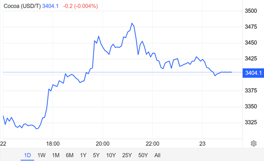 Diễn biến giá ca cao Mỹ trong ngày