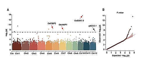 Bệnh đạo ôn lúa, do nấm Magnaporthe oryzae, là một trong những bệnh gây thiệt hại lớn nhất trên toàn thế giới. Xác định được những QTLs hoặc gen R mới điều khiến tính kháng bệnh này là vô cùng cấp thiết để phát triển giống lúa cao sản kháng bệnh bền vững. Theo nghiên cứu này, người ta tiến hành phân tích GWAS (genome-wide association study) để xác định QTLs gắn với tính kháng đạo ôn, cơ sở dữ liệu kiểu hình và kiểu gen được thu thập từ tập đoàn có 236 mẫu giống.