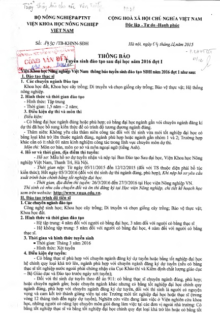 Tuyển sinh đào tạo sau đại học năm 2016 đợt I
