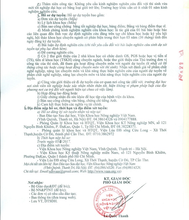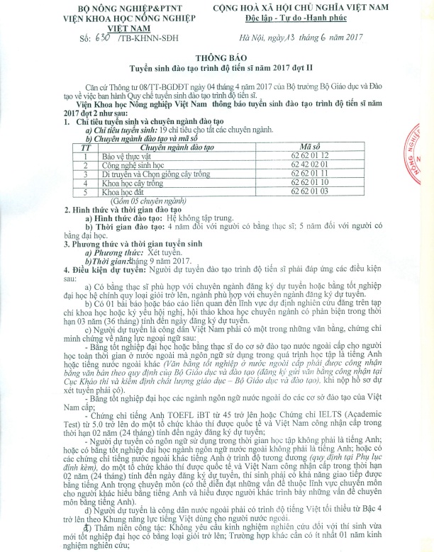 Tuyển sinh đào tạo trình độ tiến sĩ năm 2017 đợt II